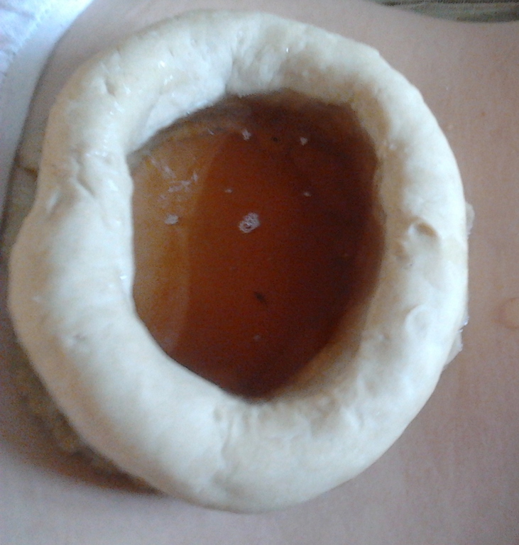 Bolitas rellenas de especias mojadas en aceite tibio.