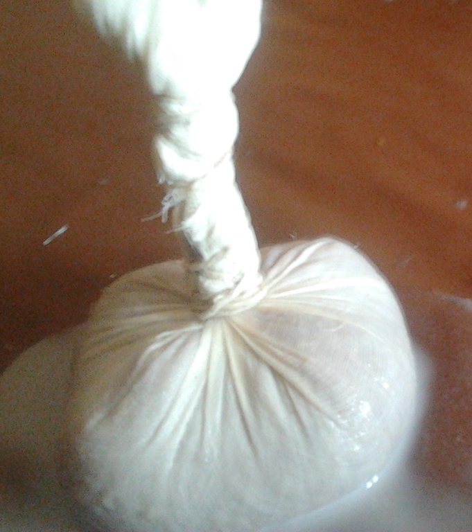Bolitas rellenas de granos de arroz Basmati, pétalos de flores, hojas de plantas y mojadas en leche.
